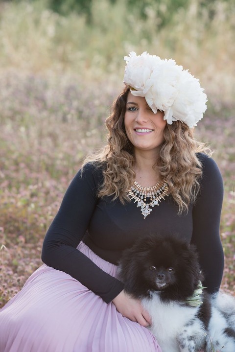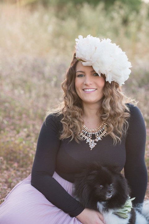 I had the privilege of photographing the talented Laura from LC Floral designs. She is like a flower, gorgeous and sweet. I am in love with her fluffy white peony floral crown. They are one of my favorite flowers. Her dog Franklin is a little prince and such a ham for the camera.